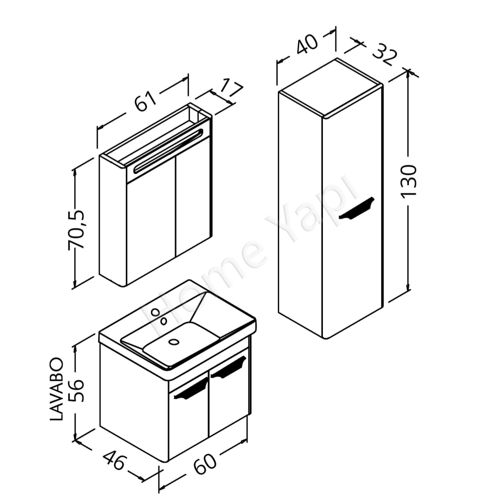 Home Yapı Banyo Dolabı 60 Cm Antrasit Asya Lake
